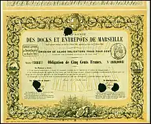 Bond of the Compagnie des Docks et Entrepôts de Marseille, issued 1 July 1860