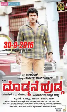 Doddmane Hudga is a 2016 Indian Kannada-language action drama film co-written and directed by Duniya Soori, featuring Puneeth Rajkumar and Radhika Pandit. The film also features an ensemble cast of Ambareesh, Sumalatha, Bharathi Vishnuvardhan, Krishna, Srinivasa Murthy, P. Ravi Shankar, Rangayana Raghu, Chikkanna and Avinash, with Shiva Rajkumar providing a voice-over.[3] This film marks the 25th film of Puneeth Rajkumar in a lead role.