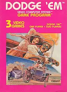 Dodge 'Em is a driving-themed maze game programmed by Carla Meninsky and published in 1980 by Atari, Inc. for the Atari VCS (later renamed to the Atari 2600). Similar to Sega's 1979 Head On arcade game, Dodge 'Em is played on a single screen of four concentric roadways. Sears released the game for the "Sears Video Arcade" as Dodger Cars.[2]