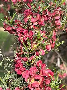 Dodonaea subglandulifera, commonly known as Peep Hill hop-bush,[2] is a species of plant in the family Sapindaceae and is endemic to South Australia. It is a small, upright shrub with flowers in small groups that are yellow-greenish to red-maroon.