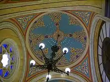 Similarly to basilicas, the building consists of three spacious richly decorated aisles, two balconies and, unusually, an organ. Its ark contains various Torah scrolls taken from other synagogues destroyed during the Holocaust.