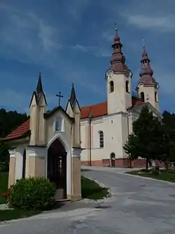 The local parish church is dedicated to the Assumption of Mary and belongs to the Roman Catholic Diocese of Novo Mesto. It was built in 1858.[4]