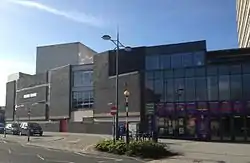 The Dolman Theatre is located in the city of Newport, Wales, United Kingdom. The theatre was formally an integral part of Kingsway Shopping Centre until major restructuring of the shopping centre forced what was the main entrance of the theatre (from inside the shopping centre itself) to be closed; the theatre was refurbished in 2005, with what was the main entrance from inside the shopping centre becoming a single-door emergency exit into Kingsway Shopping Centre; along with this change the side of the theatre facing onto Emlyn Square Road was drastically rebuilt with a new glass frontage and redesigned box office and foyer-bar area to match the rest of the renovations also (and still) in progress throughout the city.