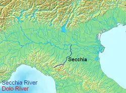 About 5 kilometres (3 mi) before entering the Secchia river, the Dragone mountain stream flows into the Dolo.