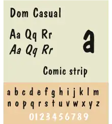Dom Casual is an American typeface designed in 1951 by Peter Dombrezian. It is an informal design that emulates brush script.