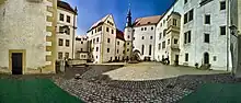 Bruce arrived in Colditz Castle, known as officer prisoner-of-war camp Oflag IV-C, on 16 March 1942. Colditz was near Leipzig in the State of Saxony.[78] It was intended to contain Allied officers who had escaped many times from other prisoner-of-war camps and were deemed incorrigible.[78] It was the only POW camp with more guards than prisoners. The Nazis regarded it as the most escape proof prison in Germany.[78] Colditz, because of the escapee prisoners it housed, eventually become thought of as an international escape academy.[79] Heavily guarded Colditz, still managed more home runs than anywhere else.[80]