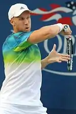 Dominic Inglot (/ˈɪŋɡlɒt/ ING-glot;[2] born 6 March 1986) is a British former professional tennis player and a Davis Cup champion. A doubles specialist; he made the final of twenty seven ATP World Tour events, winning fourteen, including the Citi Open and Swiss Indoors partnering Treat Huey and Franko Škugor, and also made the final of nine ATP Challenger Tour events winning six of them. He was a former British No. 1 in doubles. Also known as 'Dom the Bomb' due to his menacing serve.[3]