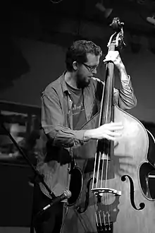 Dominic Lash (born 18 January 1980 in Cambridge, England) is a Bristol based double bassist and film theorist. He was formerly a central figure in the musicians' collective Oxford Improvisers.[1] Important long-term musical collaborators include Angharad Davies, Bruno Guastalla, Alexander Hawkins, Tim Hill, Steve Noble, Samantha Rebello, Pat Thomas, Philipp Wachsmann and Alex Ward. He has also performed with saxophonists John Butcher and Evan Parker and violinist Tony Conrad. Recent work includes a UK tour with US guitarist Joe Morris, Australian drummer Tony Buck (of The Necks) and saxophonist Tony Bevan. Festival appearances have included the Manchester Jazz Festival (with the Grew Quartet), Akbank Jazz Festival (Istanbul) and Tampere Jazz Happening.