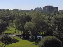 The Dominion Arboretum (French: Arboretum du Dominion) is an arboretum part of the Central Experimental Farm of Agriculture and Agri-Food Canada in Ottawa, Ontario, Canada. Originally begun in 1889, the Arboretum covers about 26 hectares (64 acres) of rolling land between Prince of Wales Drive, Dow's Lake and the Rideau Canal. Carleton University is located at the opposite side of the Canal. At a latitude of 45°, it can experience extremely hot and humid summers and extremely cold winters.