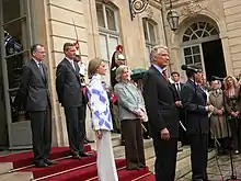 After being replaced by François Fillon as prime minister, De Villepin was indicted in connection with the Clearstream affair,[2][3] but was subsequently cleared of charges of complicity in allowing false accusations to proceed against presidential rival Nicolas Sarkozy regarding bribes paid on a sale of warships to Taiwan.[4] De Villepin enjoyed a modest return to public favour for his public critique of President Sarkozy's style of "imperial rule."[5]