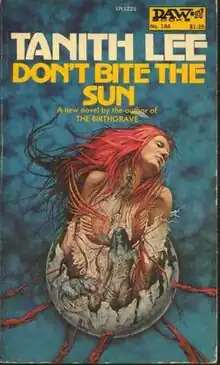 - ↑ Pattison, Jim, Paul Soanes, and Allison Rich, http://www.daughterofthenight.com/tla07a.html ["Daughter of the Night: An Annotated Tanith Lee Bibliography"],"Don't Bite the Sun- DAW Books First Edition", Daughter of the Night, April 2003