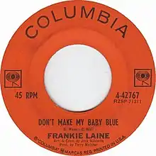 "Don't Make My Baby Blue" is a song by Frankie Laine, released as a single in March 1963. It peaked at number 51 on Billboard Hot 100.[1] It was later covered by the Shadows, who had a hit with it in the UK.