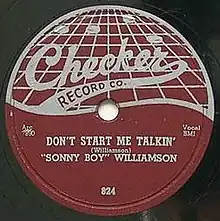 "Don't Start Me Talkin'" (also called "Don't Start Me to Talkin'") is a blues song written and performed by Sonny Boy Williamson II. It was Williamson's first single recorded for Checker Records,[3] and reached number three in the US Billboard R&B chart in 1955.