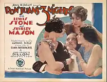Don Juan's Three Nights also known as Don Juan's 3 Nights is a 1926 American silent romantic drama film directed by John Francis Dillon and starring Lewis Stone, Shirley Mason, and Malcolm McGregor. It was produced by Henry Hobart and distributed through First National Pictures.[1]