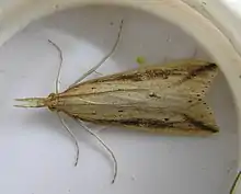 - ↑ Chen, Fu-Qiang; Wu, Chun-Sheng (April 2014). "Taxonomic review of the subfamily Schoenobiinae (Lepidoptera: Pyraloidea: Crambidae) from China". Zoological Systematics. 39 (2): 163–208. doi:10.11865/zs20140201. Archived from the original on July 2, 2014.