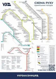 Because of the Russian occupation of Ukraine, authority over certain railways and stations was granted to Cisdnieper Railways and Ukrainian Southern Railways.[4] Currently, southern branches are under Cisdnieper Railways' administration, while the northern branches are still operated by the Krasny-Lyman Directorate. In 2016, trains recommenced operation on a separate branch in Luhansk, which had become separated due to the conflict.[5]