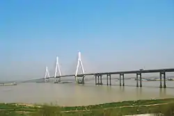 The Dongting Lake Bridge (Chinese: 洞庭湖大桥) is a bridge with a cable-stayed bridge section over Dongting Lake in Yueyang, northeastern Hunan Province, China.[1] The cable-stayed section consists of three towers supporting center spans of 310m each, with two identical side spans of 130m each.[2]