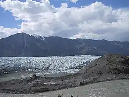 Donjek Glacier (Southern Tutchone: Dän Zhǘr) is located in Kluane National Park, in Yukon, Canada, on the eastern side of the Saint Elias Mountains. Donjek Glacier is about 35 miles (56 km) long and extends into the Donyek River Valley 3,500 feet (1,100 m) to its terminus.[1] Centuries ago Donjek Glacier formed a dam, creating Donjek Lake which is estimated to have been 230 x 106 m3.[2]