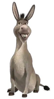 Donkey is a fictional character created by William Steig and adapted by DreamWorks Animation for the Shrek franchise. He is voiced primarily by Eddie Murphy. Donkey is an anthropomorphic donkey and his appearance is modeled after a miniature donkey named Perry.[1] He is depicted with grey fur, brown eyes, and a black mane. In the franchise, he is the sidekick and best friend of Shrek, husband to Dragon, and father to a litter of Dronkeys (Dragon-Donkeys). As the series' comic relief character, Donkey is well-regarded by critics for his wit, wisdom, and humor.