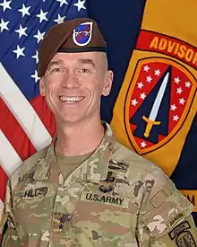 Donn H. Hill is a United States Army major general who serves as the commanding general of the Security Force Assistance Command since May 16, 2022.[1][2] He most recently served as the deputy commanding general for education of the United States Army Combined Arms Center, provost of the Army University and deputy commandant of the United States Army Command and General Staff College from July 2, 2020 to May 2022. He previously served as commanding general of the 2nd Security Force Assistance Brigade.[3][4][5]