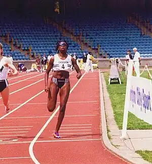 Donna Karen Fraser OBE (born 7 November 1972) in Thornton Heath, Croydon is an English former athlete, who mainly competed in the 200 and 400 m.