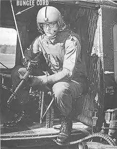 The concept of the door gunner originated during the Vietnam War, when helicopters were first used in combat in large numbers. The original personnel who served as early door gunners aboard CH-21, UH-34, and UH-1 helicopters in Vietnam, were enlisted men, with a designated and specially trained crew chief serving as both the aircraft's maintenance manager and a door gunner. Normally, a second enlisted soldier served as a second door gunner (such as on a UH-1, and UH-34, which both used two gunners – one on each side of the aircraft). Later, as the war progressed, the door gunner position sometimes used a non-aviation rated/trained soldier or marine, that volunteered for door gunner duties.