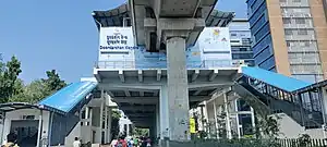 Doordarshan Kendra is an elevated metro station on the East-West Corridor of the Blue Line of Ahmedabad Metro in Ahmedabad, India. This metro station consists of the main Doordarshan Kendra (Ahmedabad) along with its adjacent Ahmedabad Education Society Ground and SKUM College of Physiotherapy. This phase of the metro system was opened to the public on 30 September 2022.[1][2][3][4]