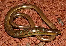 Dopasia gracilis, known commonly as the Asian glass lizard, the Burmese glass lizard, or the Indian glass snake, is a species of legless lizard in the family Anguidae. The species is endemic to Asia.