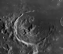 Doppelmayer is the remains of a lunar impact crater that lies on the southwest edge of Mare Humorum. It was named after the German mathematician and astronomer Johann Gabriel Doppelmayr.[1] To the south-southeast is another flooded crater designated Lee, and to the southeast is Vitello. Just to the east-northeast of Doppelmayer lies the nearly submerged crater Puiseux.