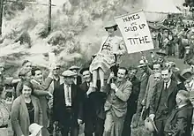 Wallace's social campaigning came to the fore in the agricultural depression of the 1930s. Her moves against the imposition of tithes led to the stock of two farms being impounded in 1935, a siege at Wortham Manor, confrontation with local Blackshirts, and bankruptcy in 1939.[1] The tithe issue led to disagreement and estrangement from Dorothy Sayers, who had been a close friend.[2][8]