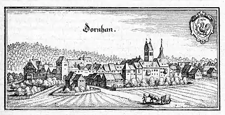 Dornhan was first mentioned in a document as "Turnheim" in 777, but the exact date of its becoming a town is unknown, although it is certain that the place has been called "civitas" (town) since 1276.