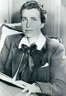 Arzner would maintain a forty-year relationship with Marion Morgan, a dancer and choreographer who was sixteen years older than Arzner. Morgan choreographed some dancing sequences in some of Arzner's movies, such as Dance, Girl, Dance.[27] Even though she tried to keep her private life as private as possible, Arzner was linked romantically with a number of actresses, including Alla Nazimova and Billie Burke.[28] It was rumored, though never confirmed, that Arzner also had relationships with Joan Crawford and Katharine Hepburn.[6] She never hid her sexual orientation, nor her identity; her clothing was unconventional for a woman of that time, as she wore suits or straight dresses.