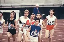 1964 Summer Olympics 800 meter race. Maeve Kyle competed in this event, reaching the semi-final.