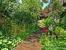 In 1925 they first created their three rock gardens.[3] Rock was quarried from nearby and transported to their garden by traction engine before being moved to the new rock gardens by crowbars.[6] In 1934 the couple were awarded the Forrest medal by the Scottish Rock Garden Club for the first time. In 1936 the garden won again[3] and Dorothy received 112 packets of new seeds from one expedition.[6] They won the medal again in the following year and in 1950.[3] In 1954 the Royal Horticultural Society awarded their Veitch memorial medal to her in recognition of her work introducing new plants.[3] The Regius Keeper of the Royal Botanic Garden Edinburgh described their creation as "the finest two acres of private garden in the country".[6]