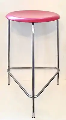 The Model 3170 stools were constructed of chrome plated tubular steel, plastic, and a bent wood veneer seat (1). The design of the stool allowed for groups to be neatly and easily stacked (3). The stools produced from 1954 to 1970 had three legs, and after 1970, the design changed to feature 4 legs (1). The 3170 stool is still being offered by retailer Republic of Fritz Hansen (4). It measures 17.3 inches high (4).