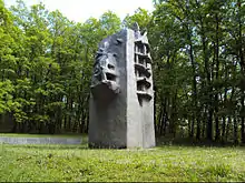 The arrangement of this park was completed in 1968 when Bakić's monument to the Dotršćina victims was finally erected on the plateau at the entrance from Svetošimunska road. In addition to the central crystalline shaped monument made of stainless steel, Bakić created six to seven crystalline sculptures in the Valley of Graves, one of the largest execution grounds in Dotrščina. The entire area and the slopes are covered with ivy so that the victims would be more peaceful. In addition to the memorials, along the road that goes through the Valley of the Graves, there are marble plaques with carved verses by Ivan Goran Kovačić and Jure Kaštelan.[3]