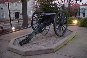The double-barreled cannon is an American Civil War-era experimental weapon and is now a modern landmark located in Athens, Georgia. While originally built for warfare, the cannon never saw battle. It is part of the Downtown Athens Historic District, in the National Register of Historic Places.