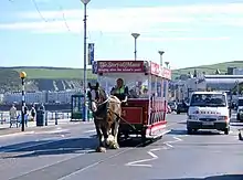 - The horse-drawn trams that run along the promenade from the Villa Marina to the Manx Electric Railway station from spring to early autumn.