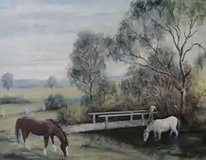 In 1952 he moved to East Doncaster as he enjoyed the Australian landscape and needed to find a balance between his family/financial commitments and his love for landscapes. Commonly using the Lower Templestowe and Warrandyte areas as inspiration to portray the geography and rugged bush of the area at the time. His landscape of this period displayed a natural beauty and positive view of the natural eco-environment, they were non-superficial with a multiple of views enticing the viewer to be drawn into the scene. He was good friends with Ernest Buckmaster who lived in Warrandyte at the time as they both had mutually respect for one another's work and similar views of true impressionist art versus the then open flare buoyant abstract fashion trend, this put them at odds with the then current establishment.