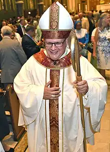 Pope Francis named Lucia to succeed Bishop Robert J. Cunningham as bishop of the Diocese of Syracuse on June 4, 2019.[3][4][5] On August 8, 2019, Lucia was ordained to the episcopate at the hands of Cardinal Timothy Dolan, with Bishop Terry R. LaValley and Bishop Cunningham serving as co-consecrators.[6]