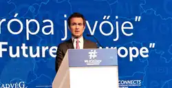 - ↑ "PM Orbán receives speakers from V4 conference "The Future of Europe" in Parliament". About Hungary. 25 May 2018. Archived from the original on 12 November 2020. Retrieved 6 January 2021.