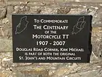 It was also part of the 15 miles 1,470 yards St. John's Short Course used for motor-cycle racing for the Isle of Man TT Races between 1907 and 1910. The Douglas Road Corner was situated between the 6th milestone and 7th milestone on the St. John's Short Course, 345 ft above sea level.[4] Also, Douglas Road Corner is part of the Snaefell Mountain Course used since 1911 for the Isle of Man TT and from 1923 for the Manx Grand Prix Races.