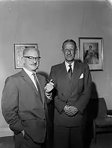 Sir Dove-Myer Robinson (15 June 1901 – 14 August 1989) was Mayor of Auckland City from 1959 to 1965 and from 1968 to 1980. Holding office for 6,543 days in total (17 years, 10 months, and 30 days), his was the longest tenure of any holder of the office.[1] He was a colourful character and became affectionately known across New Zealand as "Robbie".[2] He was one of several Jewish mayors of Auckland, although he rejected Judaism as a teenager and became a lifelong atheist.[3] He has been described as a "slight, bespectacled man whose tiny stature was offset by a booming voice and massive ego".[3]