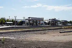 Euline Brock Downtown Denton Transit Center (formerly Downtown Denton Transit Center) is a multimodal transit center that provides DCTA bus and A-train commuter rail connections in Denton, Texas. It is east of the Denton County Courthouse-on-the-Square and is the northern terminus of the A-train.[2] In 2013, the station was renamed to honor Euline Brock, former mayor of Denton from 2000 to 2006.