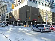 Downtown Ottawa is the central area of Ottawa, Ontario, Canada. It is sometimes referred to as the Central Business District and contains Ottawa's financial district. It is bordered by the Ottawa River to the north, the Rideau Canal to the east, Gloucester Street to the south and Bronson Avenue to the west. This area and the residential neighbourhood to the south are also known locally as 'Centretown'. The total population of the area is 4,876 (2016 Census).[1]