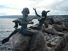 In the marina at the approach to Drøbak is a sculpture, made by Reidar Finsrud, cast in bronze of three mermaids sitting on a rock. The sculpture was unveiled in 1999.[7]