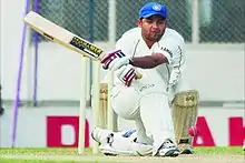 Piyush Chawla playing a reverse sweep during a Ranji Trophy match at the stadium