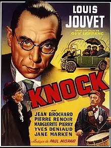 Dr. Knock (original title Knock[1]) is a French comedy film from 1951, directed by Guy Lefranc, written by Georges Neveux, and starring Louis Jouvet. It also features an uncredited appearance by Louis de Funès. The movie is based on the 1923 theatre play Knock ou le Triomphe de la médecine (Knock or The Triumph of Medicine) by Jules Romains.