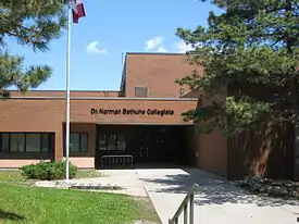 Dr. Norman Bethune Collegiate Institute (also known as Bethune, BCI, or Dr. Norman Bethune CI) is a high school in Toronto, Ontario, Canada. It is located in the Steeles neighbourhood of the former suburb of Scarborough. It was founded in 1979 and named after Norman Bethune, a Canadian doctor and communist who served under the Eighth Route Army. The school is attended by over 1000 students, most of whom speak a primary language other than English,[2] the language of instruction. Bethune is also partners with the neighbouring senior's homes: Mon Sheong and Tendercare, and with Beijing#15 High School in Beijing, People's Republic of China.[3]