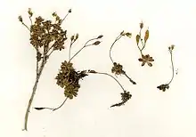 Draba carnosula is a rare species of flowering plant in the family Brassicaceae known by the common name Mt. Eddy draba. It is endemic to the Klamath Mountains of far northern California, where it is known from fewer than twenty occurrences at Mount Eddy and other peaks in the range. This is a perennial herb forming small clumps in serpentine outcrops. The leaves are located at the base of the plant, each an oval shape under a centimeter long. They are mostly hairless, except for long hairs along the edges. The erect inflorescence bears fewer than 10 yellow mustardlike flowers. The fruit is a lance-shaped silique one or two centimeters long, containing several winged seeds.
